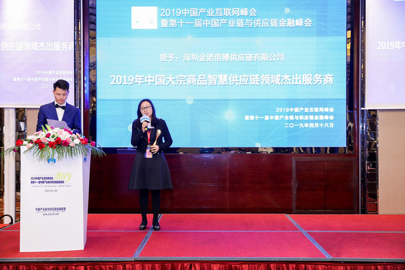 4月18日,“2019中国产业互联网峰会暨第十一届中国产业链与供应链金融峰会”在上海举行,经组委会评审,深圳金诺信博供应链有限公司(以下简称“金诺信博”)被授予“2019年中国大宗商品智慧供应链领域杰出服务商”的称号。此次荣誉的获得,意味着集团旗下智慧供应链板块在大宗商品智慧供应链领域做出了突出贡献,并获得权威机构的高度肯定和认可,为实现集团顺利由消费互联网向产业互联网迈进奠定坚实基础。
