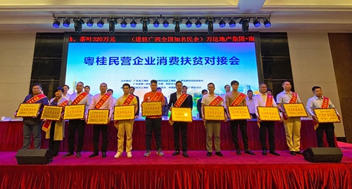 10月24-26日,广西自治区工商联、自治区扶贫办、广东省工商联、广东省第二扶贫协作工作组、百色市政府联合在百色举办“粤桂民营企业消费扶贫对接活动”,并对粤桂扶贫协作的先进民营企业进行表彰,金雅福集团等115家民营企业被授予“粤桂扶贫协作先进民营企业”称号。