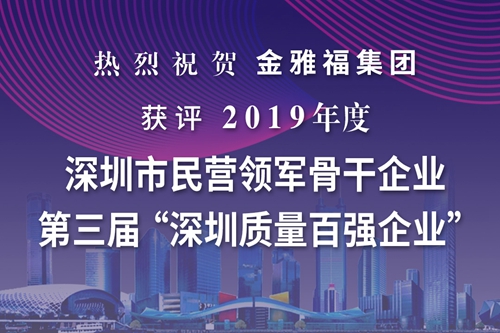 11月27日,由深圳市企业联合会、深圳市企业家协会(简称:深圳企联)主办的“2019年度深圳市民营领军骨干企业”与第三届“深圳质量百强企业”名单经公示后正式公布,深圳金雅福控股集团有限公司(以下简称金雅福集团)摘获双项殊荣,与华为、正威国际、腾讯等企业同期获评“2019年度深圳市民营领军骨干企业”,与正威国际、创维集团、大族激光等企业同期获评第三届“深圳质量百强企业”,是公司自2013年获评首届“深圳质量百强企业”之后,再次荣获第三届“深圳质量百强企业”。