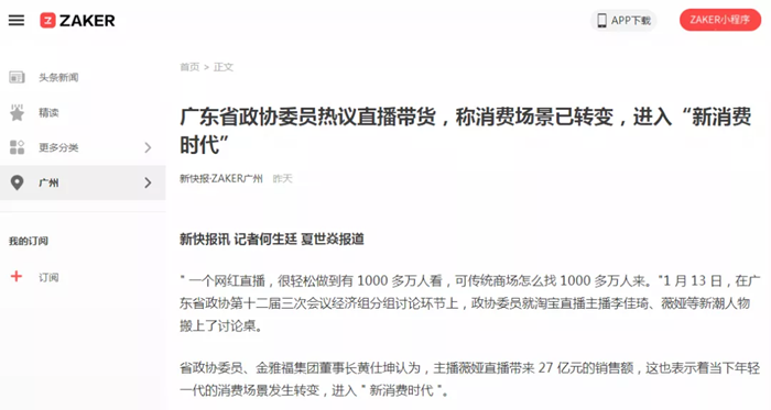 原文链接:广东省政协委员热议直播带货,称消费场景已转变,进入“新消费时代”