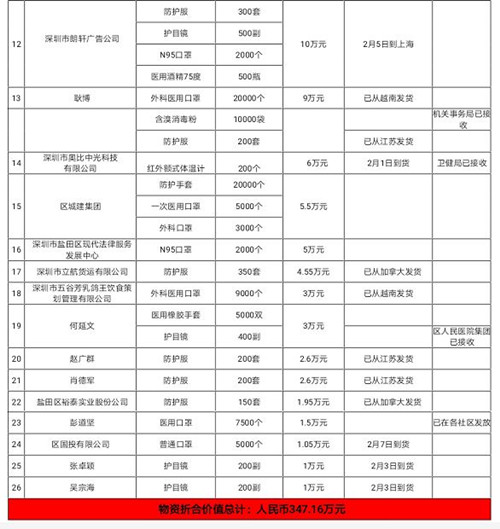 当前,新型冠状病毒肺炎疫情防控工作形势严峻,疫情的变化时刻牵动着全国人民的心。根据中央、省、市要求,盐田区委区政府全面部署、全域动员、全民行动、严防严控。面对疫情肆虐,盐田企业、社会组织及社会各界爱心人士众志成城、共克时艰,动员一切力量,调动一切资源,为打赢新型冠状病毒感染肺炎疫情防控这场硬仗奉献爱心、贡献力量。
