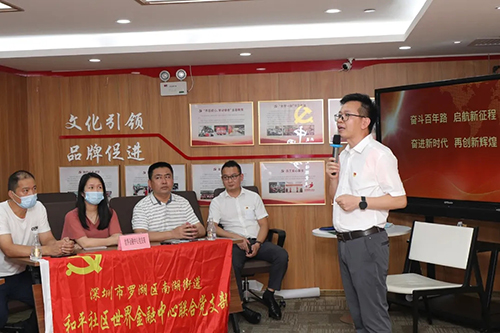 金雅福集团党支部书记杨超(图一)、世界金融中心党支部书记展瑞礼(图二)、深澳国际文化科技园党委书记肖莹洁(图三)带领学习党史。