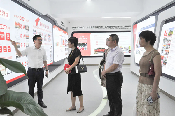 王奕苹秘书长一行参观考察了金雅福企业展厅、黄金文化艺术馆、北京工美白孔雀非遗馆,了解了金雅福的发展历程、战略规划及相关组织活动等情况,尤其是在园区负责人的引导下,深入了解深澳国际文化科技园的产学研规划和发展情况。