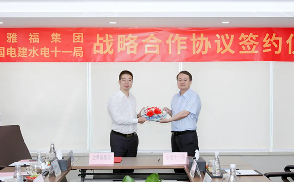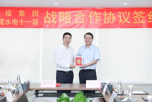 7月23日,金雅福集团与中国水利水电第十一工程局有限公司(以下简称:中国电建水电十一局)签署战略合作协议。金雅福集团董事长黄仕坤、中国电建水电十一局党委书记、董事长张玉峰代表双方签约。金雅福集团产业发展版块相关负责人与中国电建水电十一局相关领导出席并见证了签约仪式。