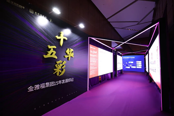 这是一个伟大的时代,科技创造璀璨文明;这是一个崛起的时代,创新成就无上梦想,金雅福集团在党和国家的指引下,伴随改革开放的时代机遇顺势而为,为产业升级发展铸就精美的时代音符。盛典现场陈列金雅福十五年发展成就展,并通过宣传片回顾金雅福十五年锐意进取,以客户为中心、以价值创造者为本,持续整合产业链资源,创新发展致力为客户提供便捷美好服务,成长为中国企业500强的奋斗历程。