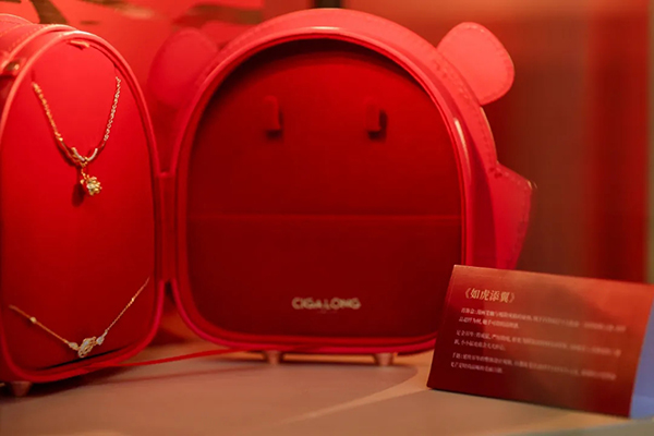 秉承中国经典文化,金雅福联合龙梓嘉CIGALONG联袂打造的2022虎年生肖首饰—如虎添翼精彩亮相展览现场,产品灵感来源于三国时期如虎添翼一词表达的好上加好、强强联合等寓意,由此内涵出发,将福运融入在产品创作之中,为虎年添福添好运。