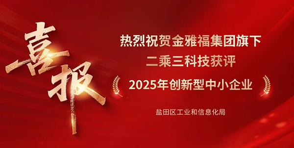 此次获评“2025年创新型中小企业”,充分体现了二乘三科技在技术创新、市场拓展与品牌影响力方面的持续突破,也进一步印证了金雅福集团以科技驱动产业升级的战略成效。未来,二乘三科技将继续坚持创新驱动发展战略,深化技术应用,拓展产业边界,为行业高质量发展注入新动能,助力金雅福集团实现更高水平的发展目标。