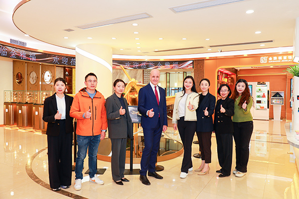 参访期间,金雅福集团相关负责人向赖因费尔特全面展示了在黄金珠宝领域的创新成果,重点介绍了引领行业变革的黄金AI机器人商店——金雅福智慧金店。并阐述了深澳国际文化科技园作为对接粤港澳大湾区、促进与葡语系国家经贸往来的重要平台,在推动国际文化交流与经贸合作方面取得的显著成效。