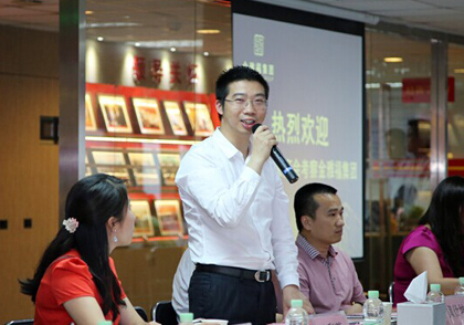 座谈会上,黄董对客商会企业家的到来表示热烈欢迎,并通过播放企业宣传片和讲解PPT的方式,向在场企业家详细地介绍了黄金产业链的组成、国内黄金珠宝企业发展现状、金雅福的产业价值链和商业模式,并在企业管理、人才打造、盈利模式等方面与大家进行了毫无保留的经验分享。黄董指出,做企业要把握好四点:第一是稳健的现金流,既要有合理的商业模式,防止资金链出现断裂;第二是不能盲目投资项目,要合理评估风险;第三是股权配置要合理;第四是要能预测未来市场趋势,做长远规划。黄董的一番肺腑之言赢得了在座企业家的一片热烈掌声和啧啧称赞。面对大家众多赞誉之词,黄董却连连谦虚地称,自己离所谓成功还很远,自己还在向其他更多优秀的客商学习,并期待金雅福能在客商会的大平台与更多的客商企业进行更为密切的互动与合作。