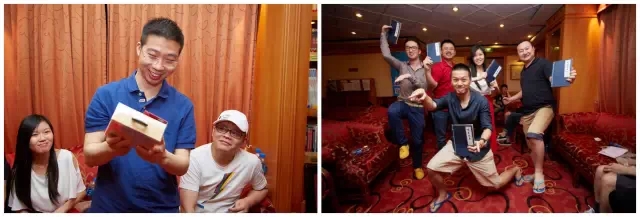 海魅之夜”青商派对——此次活动最精彩的环节在晚餐结束之后到来了!尽管派对名字高冷,但开心搞怪的“粘一起”、“撕纸巾”等整蛊游戏使派对变得无比欢乐无厘头,深圳卫视知名主持人汪真帅更是在游戏惩罚环节化身“腹黑女神”,让整个活动现场乐翻天。深青商的兄弟姐妹们们一改平日严肃状态,纷纷化身游戏达人,豁出全力比拼起游戏项目。此时此刻,大家共同返璞归真,重回童年时光。在派对最后的交换神秘礼物环节,大家随机抽取各自提前准备好的礼物,纷纷收获意外惊喜,每位赠送者对礼物意义的讲解令派对在欢笑过后,留下满满的温馨。而秘书处“精心准备”的整蛊礼物“武林秘籍”也使得大家再一次欢笑不断。派对结束后,意犹未尽的大家又各自“拉帮结派”,或携手去看船上的歌舞表演,或结伴前往KTV高歌一曲。